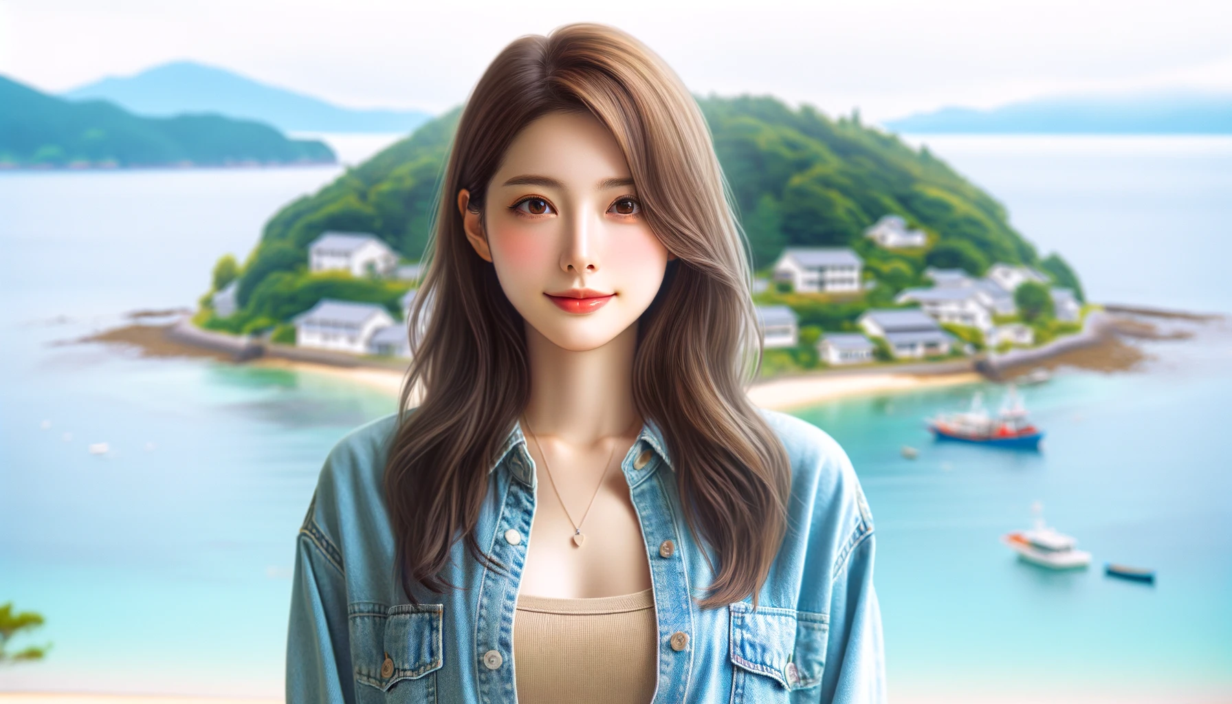 2024.04.05 DALL·E 2024-03-10 21.34.23 – Create an image that emphasizes a beautiful girl in a more focused manner, living on Awaji Island, with slightly more skin exposure while still mainta shimabito