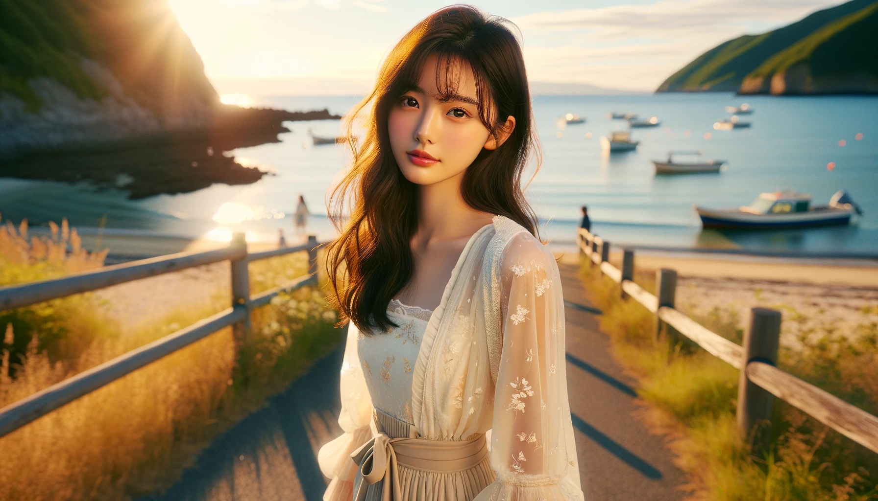 2024.04.05 DALL·E 2024-03-12 23.19.48 – This image portrays a beautiful Japanese girl on Awaji Island, enhancing her appearance to embody the quintessential image of a lovely young beauty. S shimabito