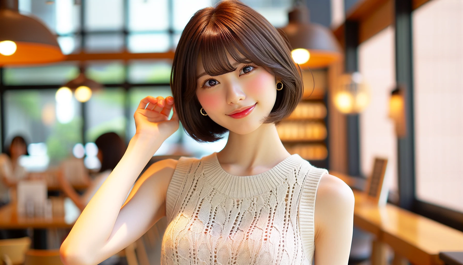 DALL·E 2024-04-04 22.36.31 – Revise the image to feature a tall Japanese woman with a bob haircut, having an enhanced figure with a more pronounced chest area to add to her femini