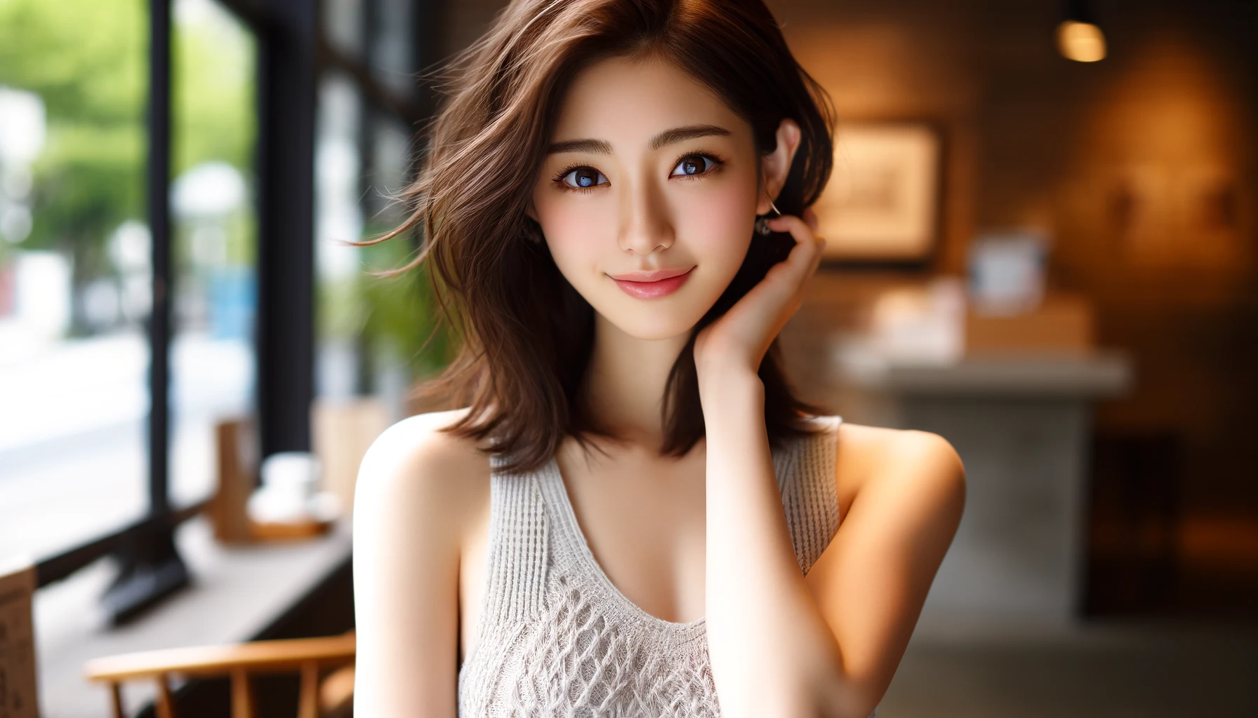 2024.04.05 DALL·E 2024-04-04 22.38.11 – Enhance the quality of the image significantly, showcasing the tall Japanese woman with the entire upper body visible in a more refined and high-quali shimabito